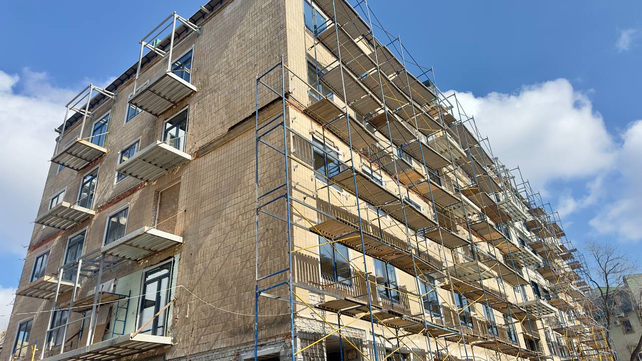 Вже відновили пошкоджені зовнішні стіни, перекриття, балкони й сходові марші, а також провели утеплення підвального приміщення. Наразі підрядники завершують монтаж нових металопластикових вікон і готують балкони до остаточного скління.