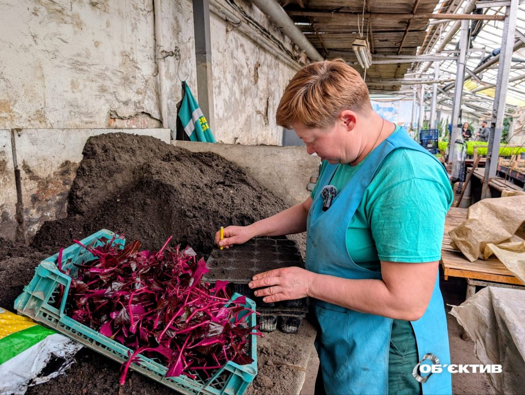 «Ми працюємо цілий рік: якщо не сіємо — живцюємо. Коли завершили живцювання, переходимо до посіву насіння. Насіння вже підростає, пікіруємо. Нині якраз іде й посів, і пікіровка, й висадка, і живцювання. Все це потрібно, щоб через кілька місяців віддати в місто готові рослинки і забезпечити оформлення клумб», — каже Інна.