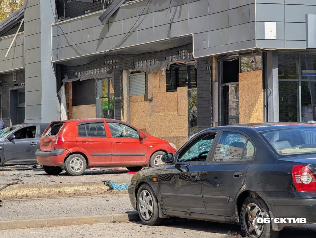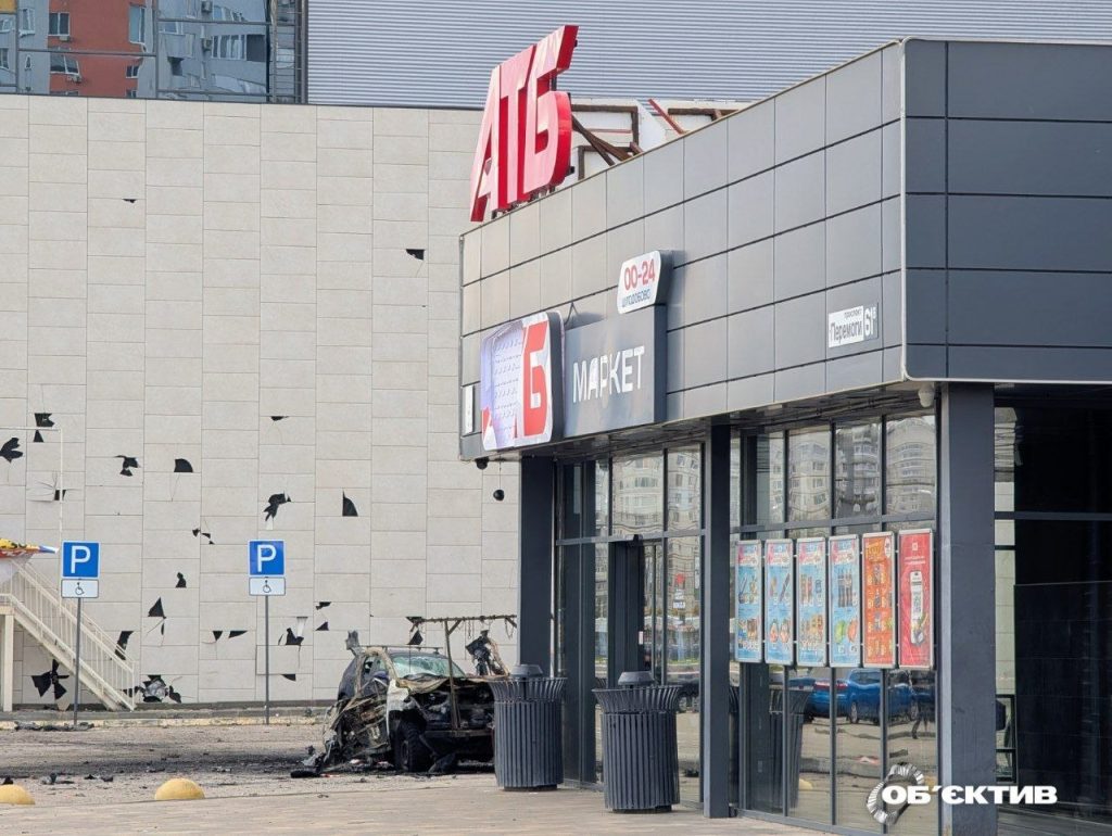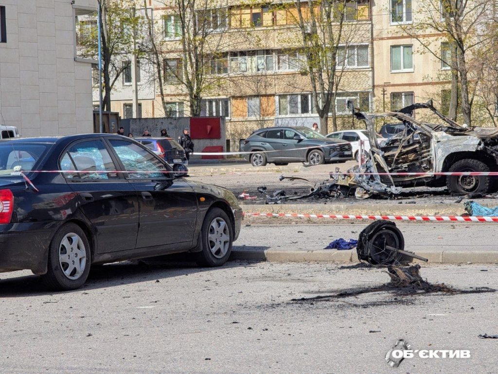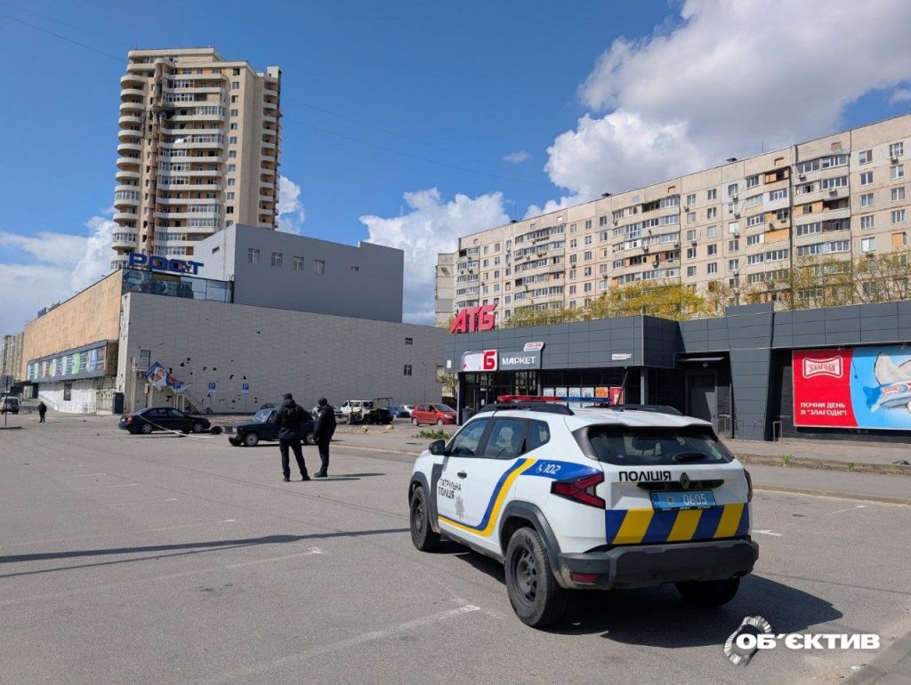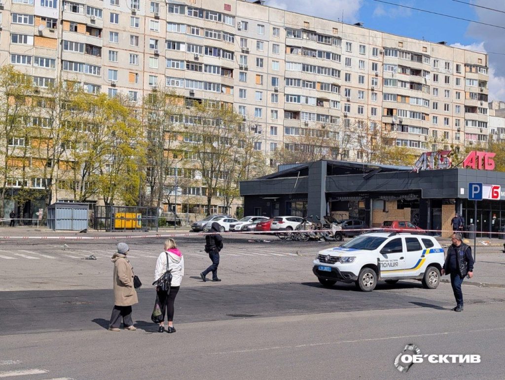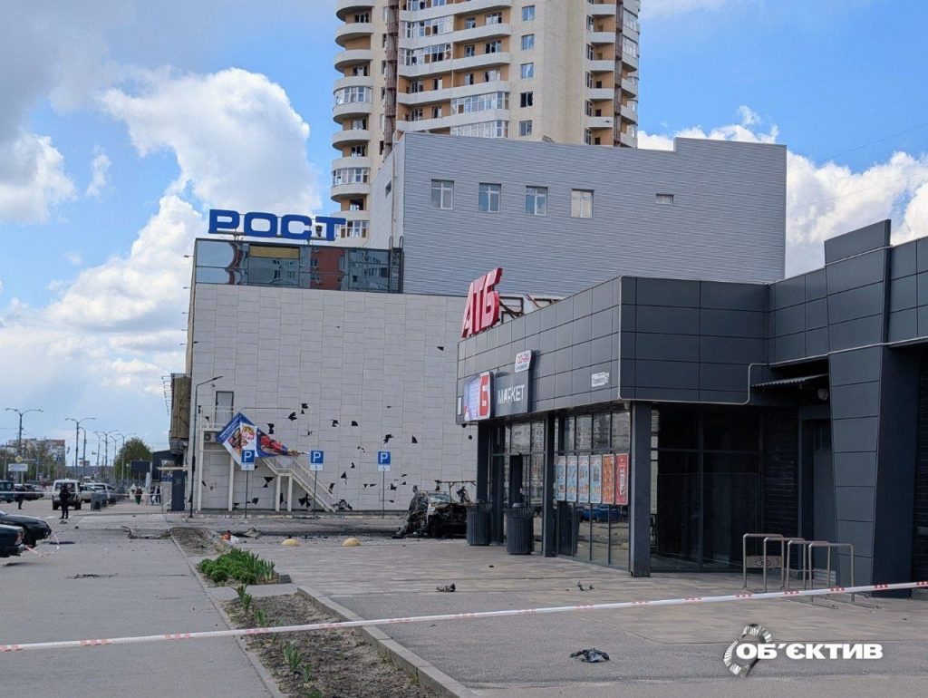 Паркову зону біля супермаркету АТБ на проспекті Перемоги в Харкові, де ввечері 29 квітня прогримів вибух у автомобілі, досі оточено.