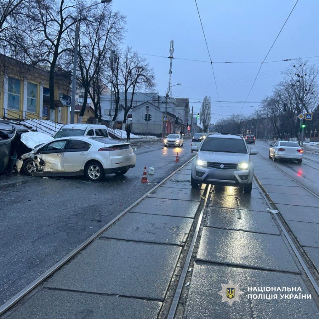 За повідомленням ГУ Нацполіції в Харківській області, 43‑річний водій Volkswagen Passat виїхав на смугу зустрічного руху та зіткнувся з Chevrolet Volt, за кермом якого була 32‑річна жінка; унаслідок цього трапилося подальше зіткнення залученого транспортного засобу з Renault Kangoo.