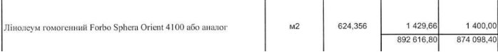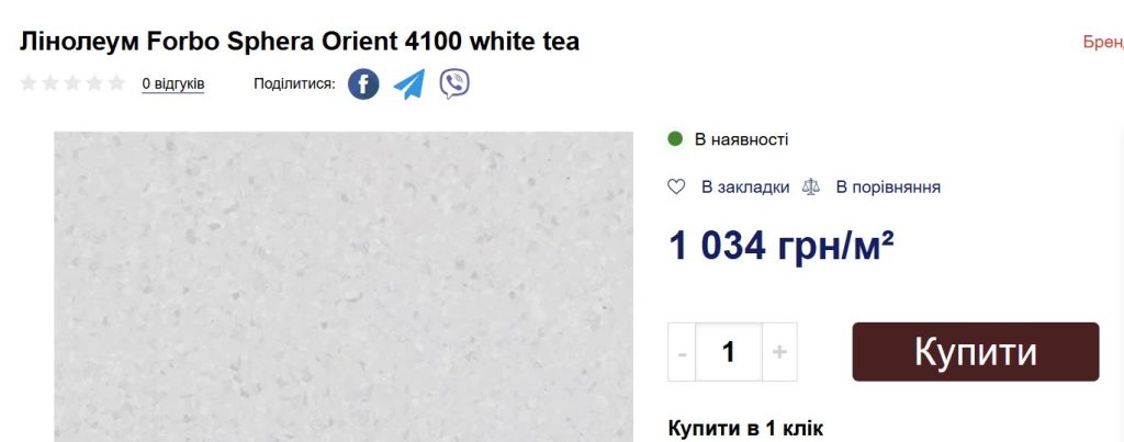 Ще одна позиція з потенційною переплатою — гомогенний лінолеум Forbo Sphera Orient 4100. У кошторисі його ціна зазначена як 1 400 грн/кв. м.