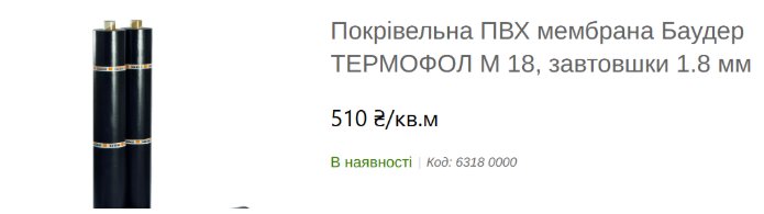У кошторисі також зазначена ПВХ-мембрана товщиною 1,8 мм без конкретної марки за ціною 750 грн/кв. м. Наприклад, мембрана бренду Баудер коштує близько 510 грн/кв. м, тому ймовірна переплата за цю позицію може перевищувати 200 тис. грн.