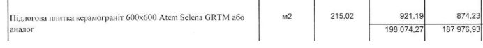 Керамогранітну плитку в кошторисі закладено по 874 грн/кв. м.